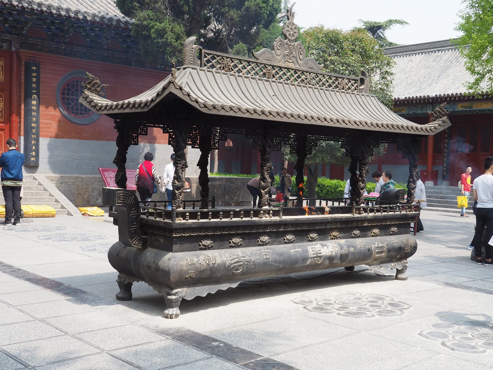 We learned that he is in the army, a squadron leader, lives in Luoyang but is from a small town near Beijing and is done the army this year. He was heading home that afternoon by train so said he had some time to walk with us. When we were done looking at the flowers, we walked back and he offered to take us to a famous temple, White Horse Temple. He went and grabbed his tiny bag, and we took our backpacks on the local bus to a small train station where we stored our them. We caught a taxi and Fei negotiated a set price for the temple, back to the small train station and then on to the train station we actually needed. We arrived at the temple and it was beautiful. It was neat to be there with Fei as he told us that this was the first Buddhist temple in China.